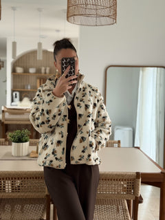 Fermeture zippée, col montant et poches latérales ajoutent une note pratique sans rien enlever au charme de cette pièce cocooning.